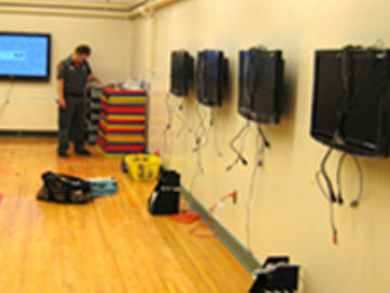 What was once an empty stage collecting dust and storing mats has been transformed into a dynamic centre of activity bursting with technology.